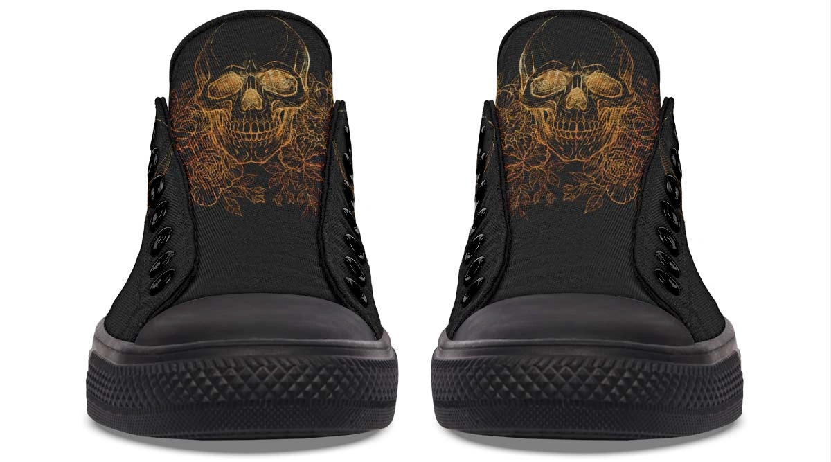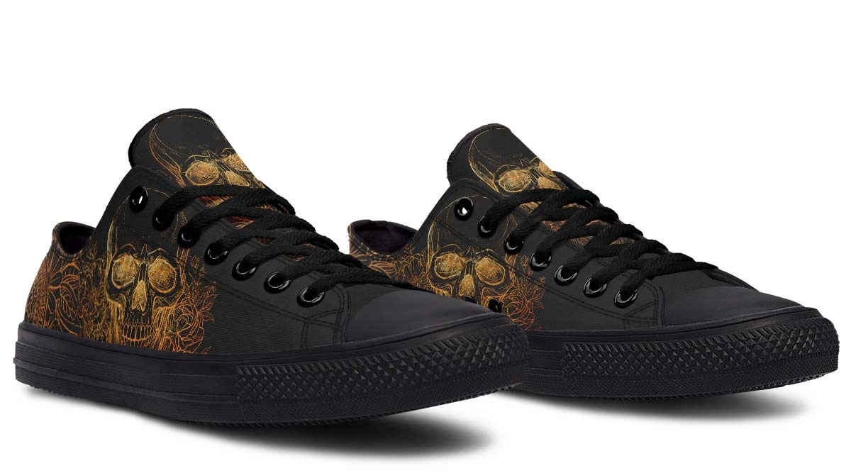 Gold Foil Skull Sneakers – Luxury Black Low Top Streetwear