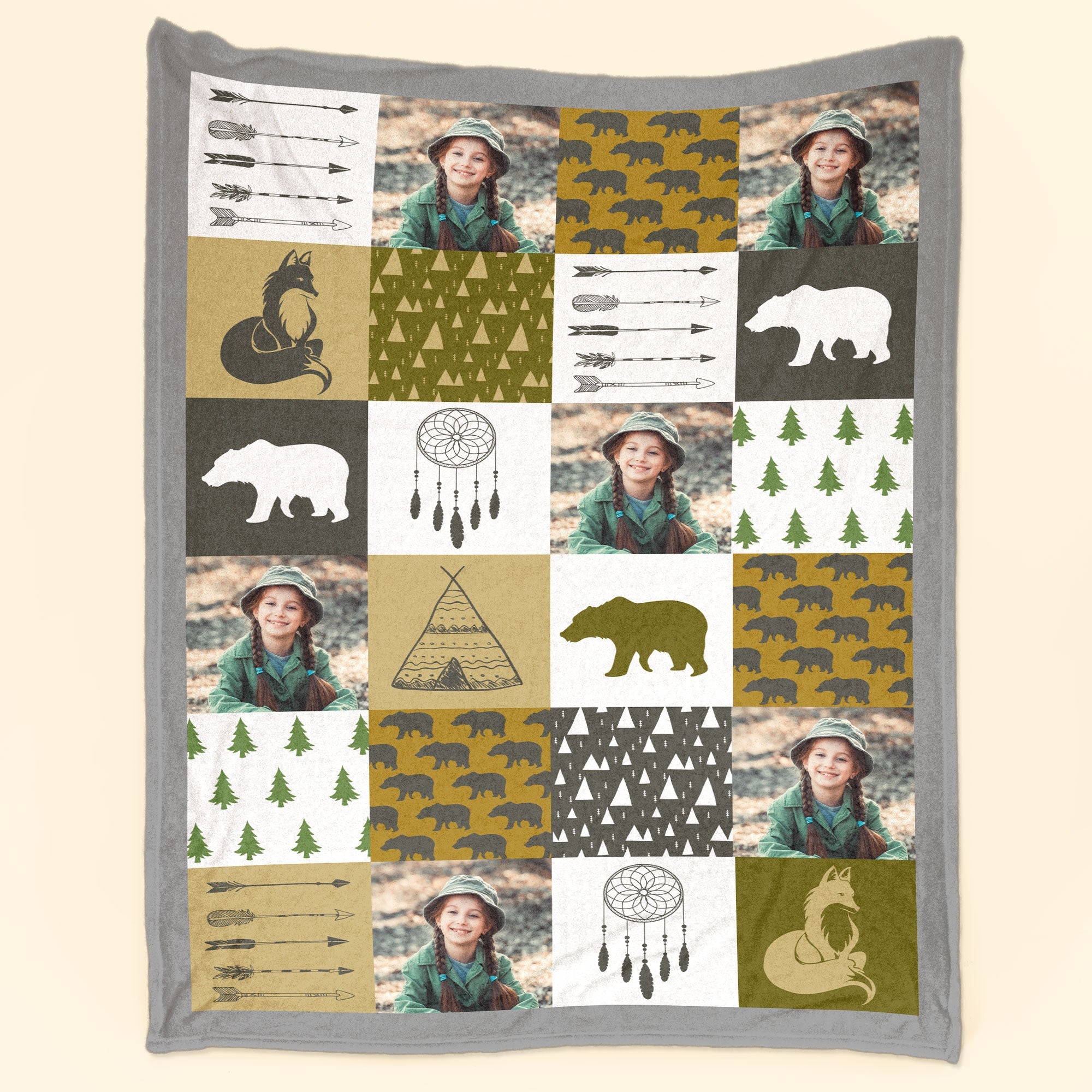 Little Happy Camper – Personalized Kid Photo Blanket 100″ x 60″