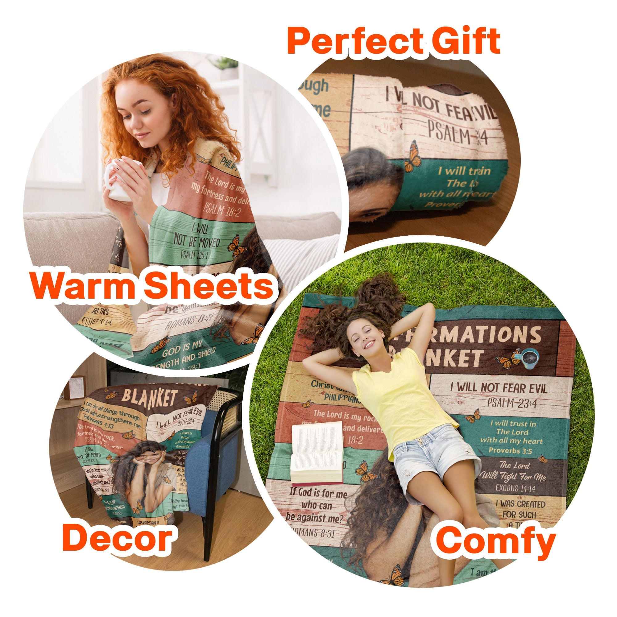 Embrace the power of faith and comfort with our My Affirmations Blanket For Her, Daughter, Friends, Mom – Personalized Photo Blanket, a heartfelt addition to our collection of Christian gifts for women. This beautifully crafted blanket is the perfect birthday gift for Christians and a wonderful religious gift for women, including moms, daughters, and friends. It is adorned with carefully selected Bible verses that serve as empowering affirmations, providing a source of spiritual strength and inspiration whenever she wraps herself in its warmth.