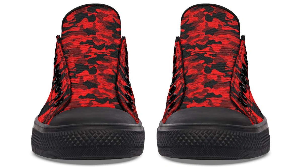 Step up your game with Red Camo Skull Low-Top Sneakers. Bold red camouflage and skull patterns create an edgy look for the ultimate urban fashion statement.